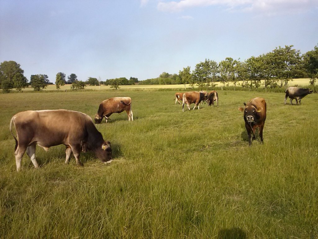 Når dyrene kommer på græs bliver kødet mørkere og minder derfor om en mellemting mellem kalve og oksekød.