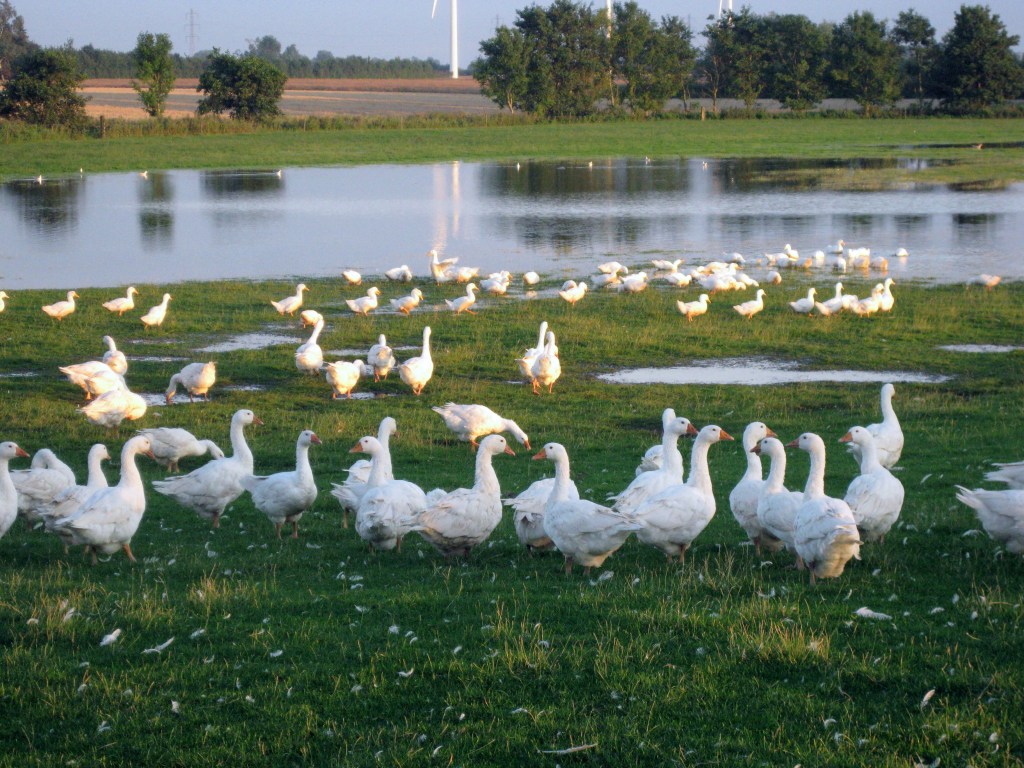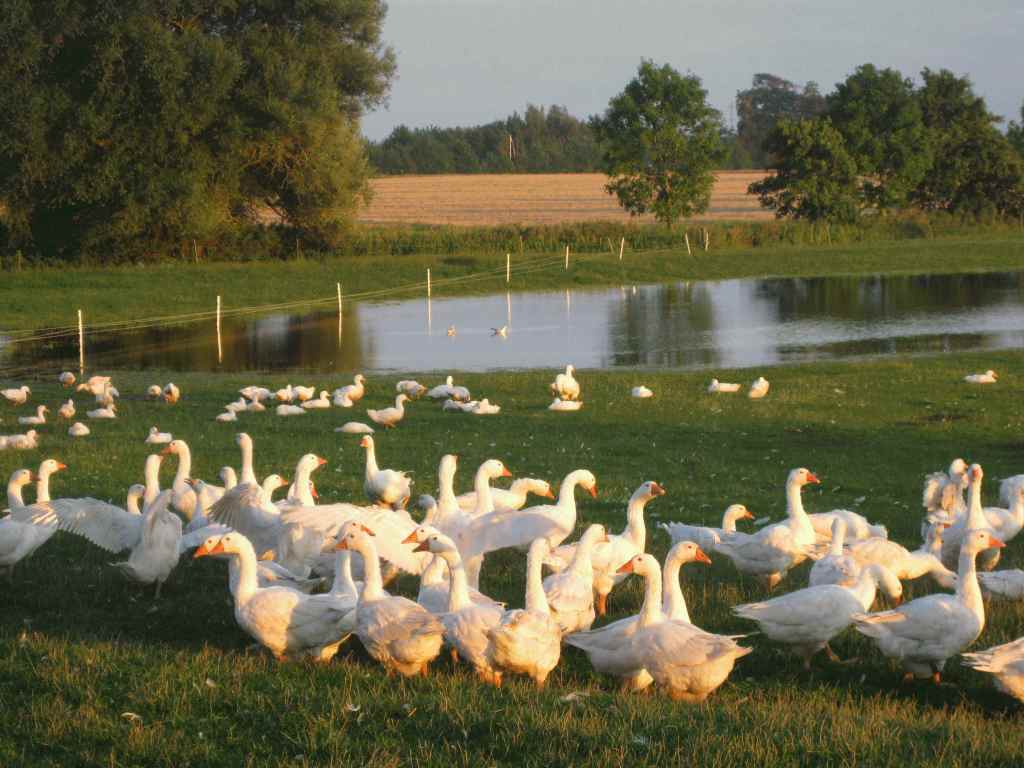 | Fra 1. november er der friskslagtede gæs og ænder Gløvermosegaard. Ænder og gæs kommer til os i maj og juni måned og er ca. 1 dag gamle. Gæssene er af racen Original Legarth, ænderne er af racen dansk landand og Rouen and. Landanden er en traditionel stor hvid and, Rouen anden er en mindre farvet gourmet and, hvor der er krydset vildand ind i landanden, kødet er mørkere, mere vildtagtigt og mere magert. De lever af græs og korn fra egne marker. De er ude hele dagen, men om natten bliver de lukket ind af hensyn til ræven. Gæssene er slagteklar når de er 22 uger gamle, ænderne når de er 18 – 22 uger. Gæs og ænder slagtes fra slutningen af oktober og kan kun leveres frosne På gården kan de leveres fra 1 november. |