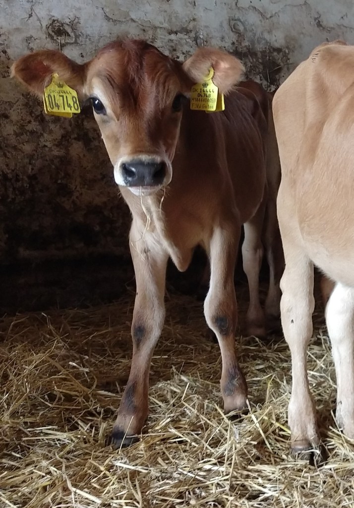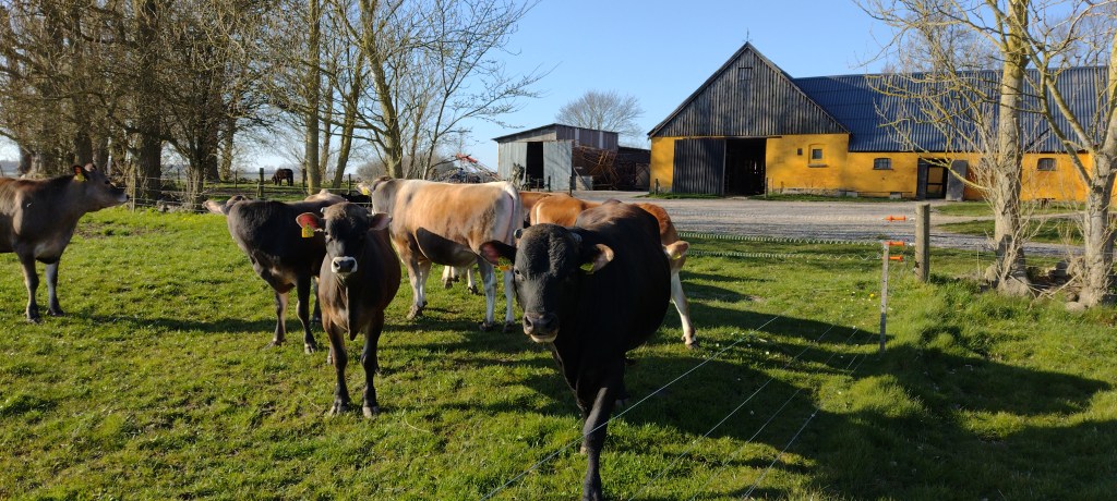 De kommer fra den samme malkebesætning og leveres til os når de er 3 – 4 måneder gamle. På det tidspunkt er de stoppet med modermælk og lever nu af græs, korn og hø fra egne marker.
